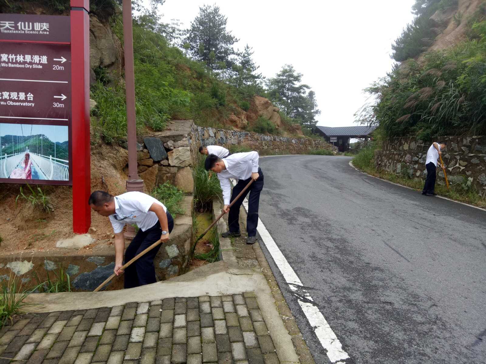 ? ??進入汛期以來,按照風景區(qū)黨委的統(tǒng)一部署,主峰景區(qū)支部統(tǒng)籌安排,積極推進,認真落實景區(qū)防汛各項工作,7月14日,結(jié)合支部“黨員活動日”,主峰景區(qū)支部組織黨員對大龍窩景區(qū)周邊附屬設(shè)施、停車場、旅游公路等多處排水溝進行了清理維護,徹底清除了排水溝內(nèi)的淤泥、雜草等,有效改善了汛期排澇功能,及時消除安全隱患,進一步確保了汛期景區(qū)旅游安全。