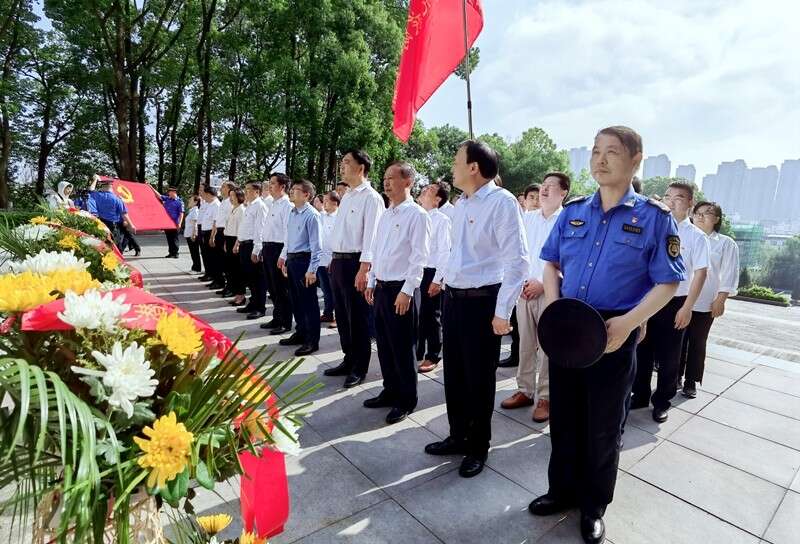 ? ? 在革命烈士紀(jì)念碑前,黨員們進(jìn)行祭奠革命先烈掃墓儀式,由天柱山執(zhí)法大隊(duì)隊(duì)員敬獻(xiàn)花籃,市委常委、天柱山管委會(huì)副主任涂高生、天柱山管委會(huì)副主任余炳陽(yáng)、市文化旅游體育局局長(zhǎng)李桃生、天柱山旅游發(fā)展有限公司董事長(zhǎng)汪全海整理挽聯(lián)。天柱山風(fēng)景區(qū)紀(jì)檢監(jiān)察工委書記江霞帶領(lǐng)大家重溫入黨誓詞,向烈士鞠躬致敬。