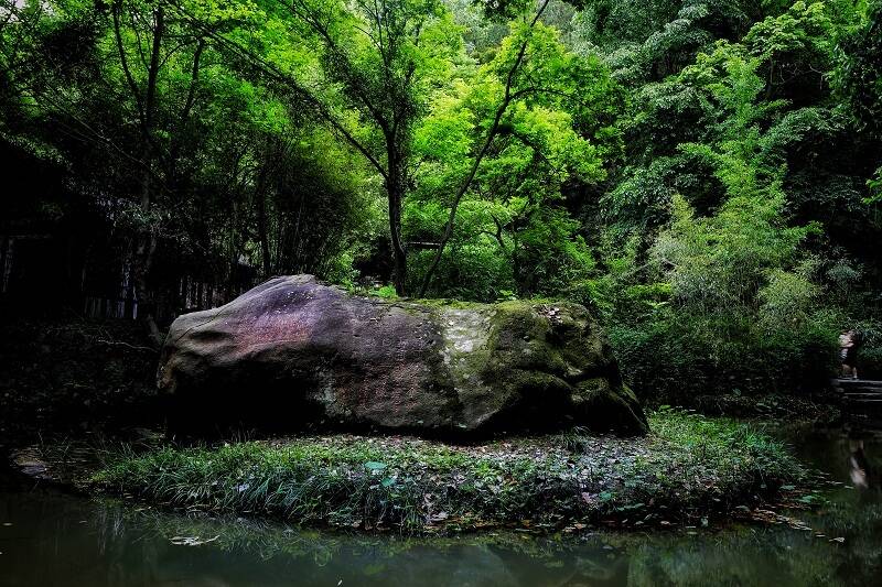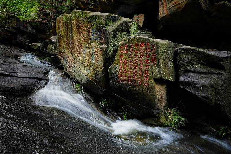 古時,王安石在這里坐石而忘了憂愁,黃庭堅(jiān)甚至將此視為安身立命之所。蘇軾、朱熹、李公麟等名家或愜意夜游,或吟詩歌賦,留下了400余方縱肆的書法石刻。面對先賢的摩崖石刻,往來喧囂之心會變得安靜和謙卑。這里環(huán)境幽靜、植被茂密、溪水潺潺,是天然的“氧吧”,更是避暑消夏的好“涼”方。