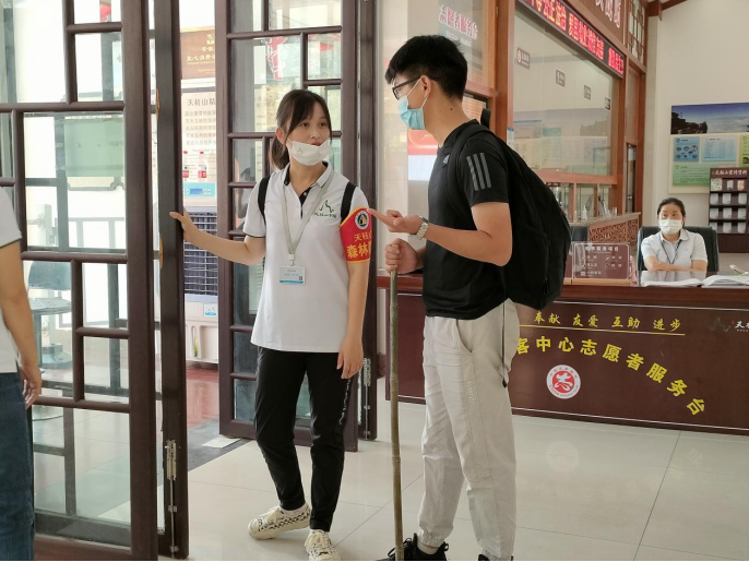 她們說:“這個國慶很慶幸還參加了景區(qū)舉辦的“同為炎黃子孫?同升一面國旗”愛國主題活動,親眼看到抗美援朝老爺爺,太感動了”“好多游客還不懂得通過手機(jī)app小程序掃碼購票,通過我們的幫助,游客就可以不去窗口取票,能夠快速同行?!薄斑@次我們還向游客發(fā)放問卷,了解游客對天柱山的旅游體驗以及對景區(qū)的期待和服務(wù)工作的認(rèn)可度,希望通過這項活動切實提升天柱山的服務(wù)軟實力?!?span style="font-family:'楷體' , '楷體_gb2312' , 'simkai'">(夏荷)?